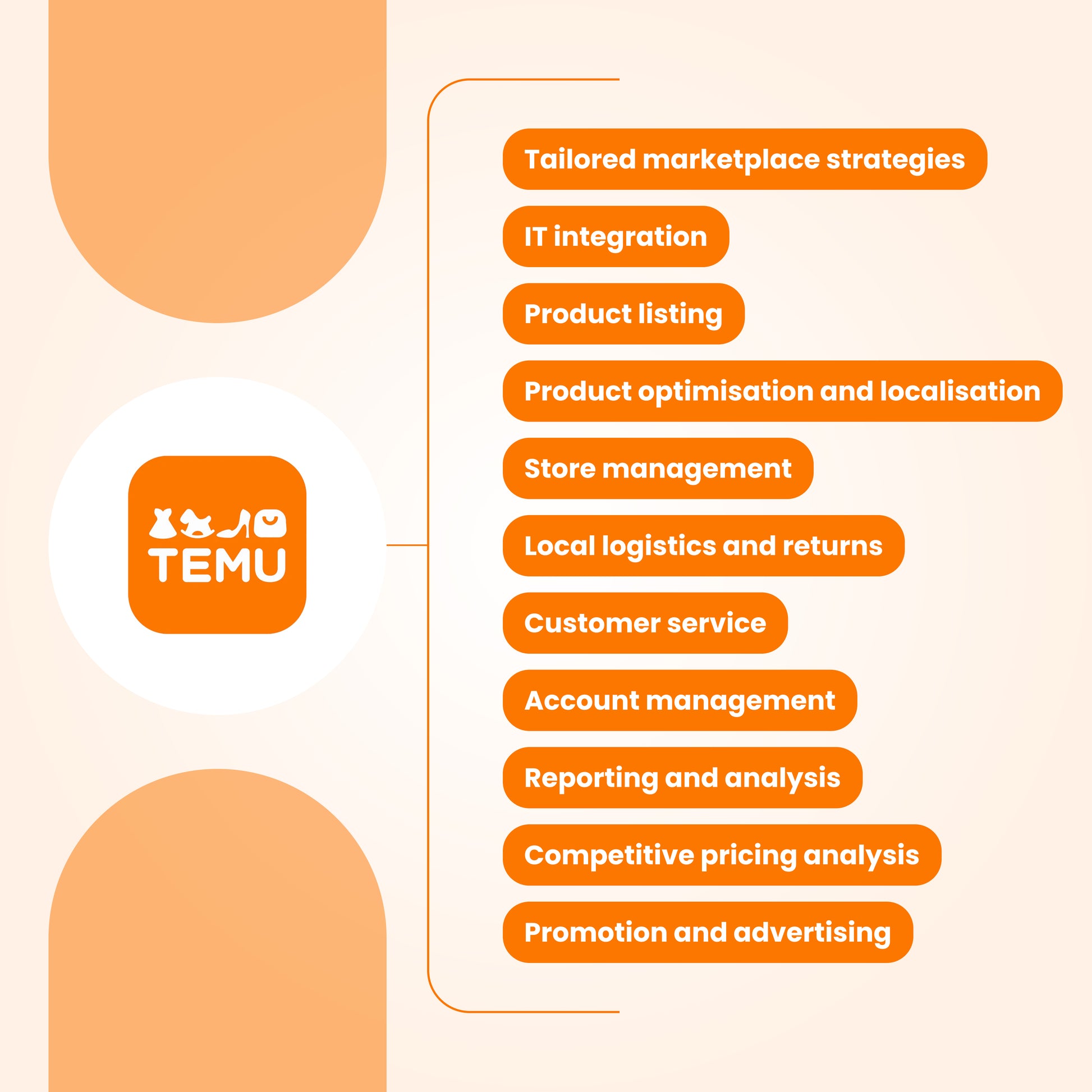 At RetailTantra, we understand that every business is unique and that its needs evolve over time. That’s why we provide a comprehensive, tailored and scalable turnkey solution that allows businesses of all sizes to customize their level of support. Our full range of services includes everything needed to operate successfully on Temu Marketplace, so you can focus on your business without worrying about the technical aspects of selling.